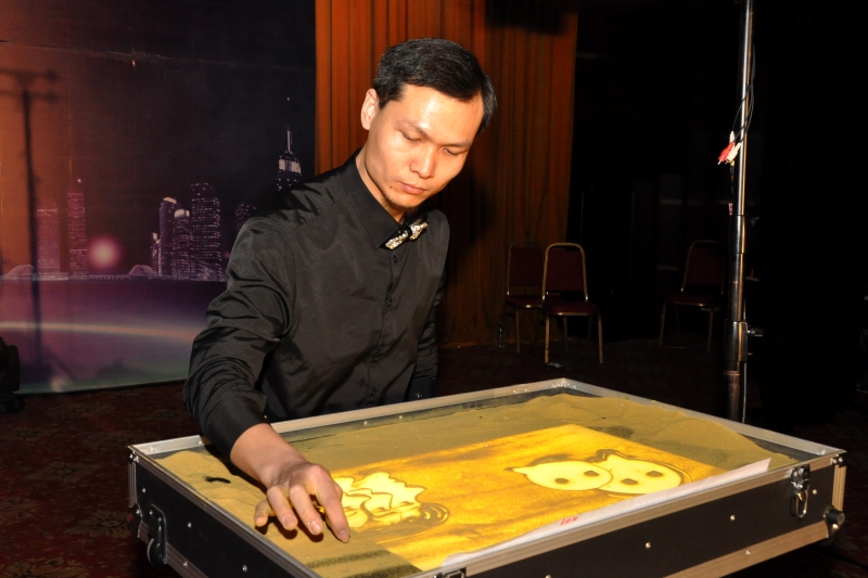 以定制企業文化的沙畫拉開客戶答謝會的序幕